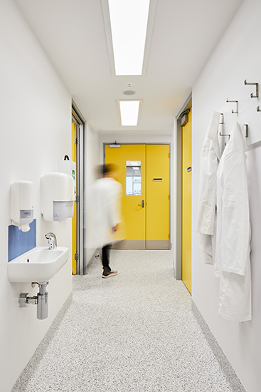 The new facility includes a general laboratory area, a food preparation space, a clean room and an RNA preparation room, an airlock-protected insect lab and two dissection rooms. Equipment and building services have been accomodated to support the research including C02, RO glasswashing, incubators, freezers, fridges, cooking equipment, and exhaust.