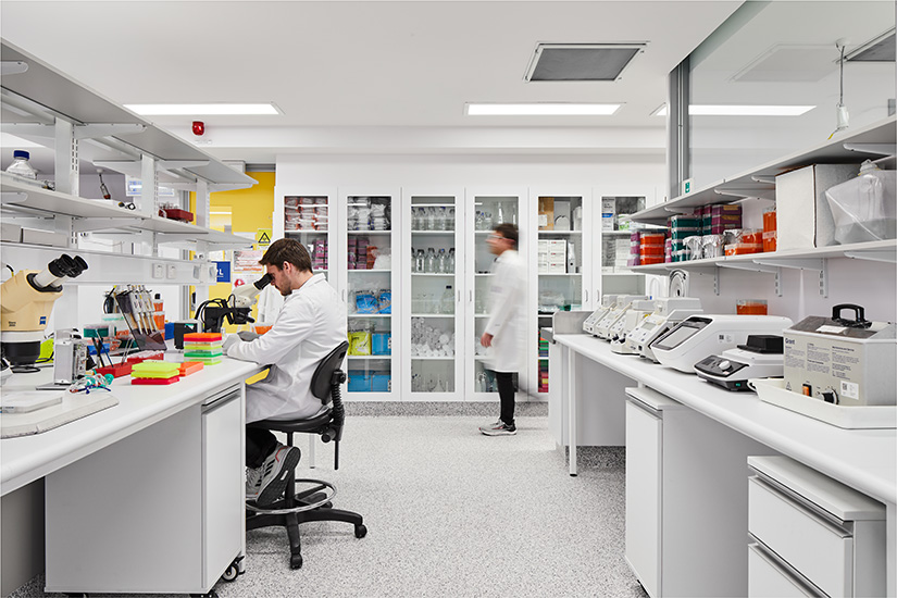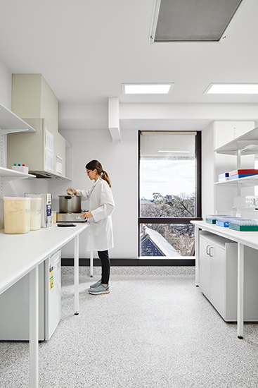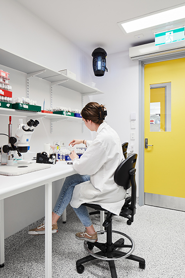 The Evolutionary Insect Lab provided research facilities for Laureate professor Dr Nina Wedell and involved the refurbishment of an existing building at the University of Melbourne’s Biosciences 4 building. The new lab was designed to PC2 standards to facilitate a new OGTR (Office Gene Technology Regulator) certified insect laboratory suitable for using wild and imported genetically modified flies (drosophila melanogaster and pseudoobscura) as well as moths in the research. The research consists of the rearing of insects and conducting observational assays together with DNA work, and the use of bacteria in the insects.