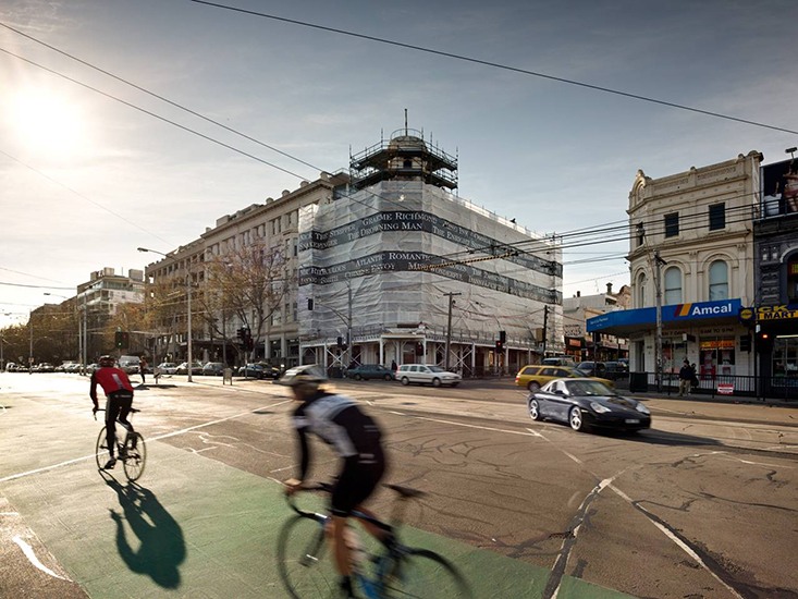 Broad consultation was conducted with stakeholders, including tenants and user groups, Heritage Victoria and City of Port Phillip as well as with service supply authorities and the community in general. Artwork (by Jo Sciclua) was commissioned for the scaffold during construction with relational references to the building’s prominent history.